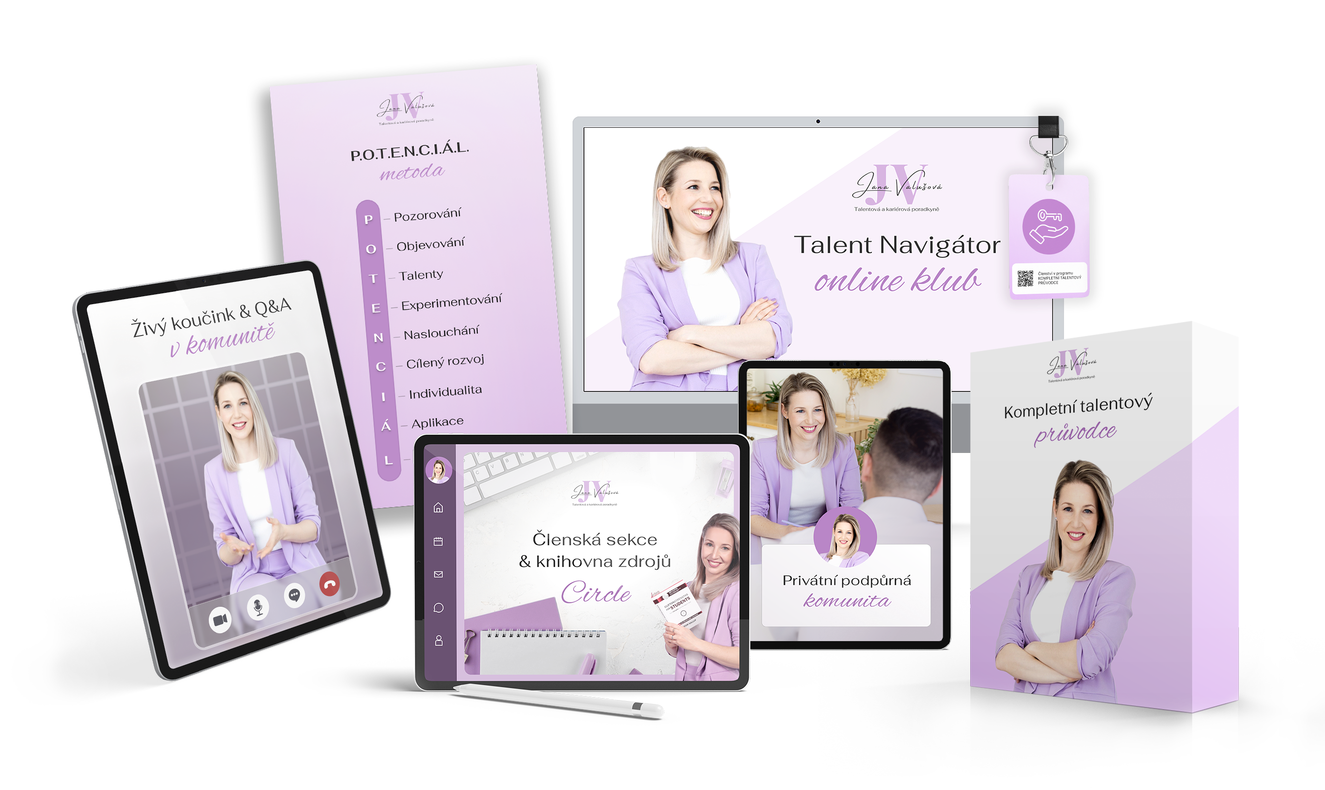 Nevíte, co vaše dítě skutečně baví a v čem může přirozeně vynikat? Představuji vám Talent Navigátor – online klub, který vás krok za krokem provede objevováním jedinečných silných stránek vašeho dítěte. Díky unikátní metodě P.O.T.E.N.C.I.Á.L. získáte jasnou cestu, jak své dítě podpořit. Čekají vás konkrétní postupy a osobní podpora, díky kterým uvidíte první změny už během 90 dní. A na nejistotu při výběru školy můžete s klidným srdcem zapomenout.